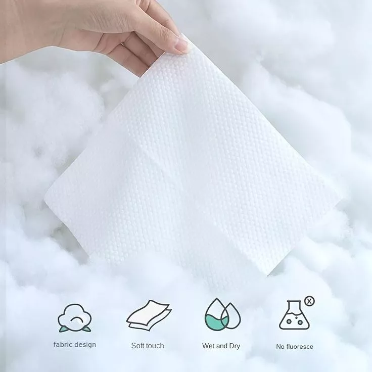 Diperbuat daripada kain bukan tenunan biodegradable 60gsm yang diperbuat daripada pulpa kayu yang disahkan FSC, dengan serat halus seperti fluff haiwan dan kekuatan tegangan sehingga 40n/5cm, tidak mudah pecah atau sisa flotsam ketika menyapu. Permukaan dilapisi dengan lapisan bionik daun teratai, supaya noda dapat dibersihkan dengan segera dan kerengsaan kulit yang disebabkan oleh menggosok berulang dapat diminimumkan.