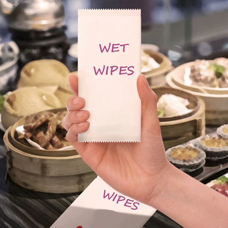 Sebagai perkhidmatan pengambilan dan penghantaran terus berkembang, restoran termasuk tisu basah yang dibungkus secara individu dalam setiap pesanan. Mereka menawarkan kemudahan, kebersihan, dan meninggalkan kesan profesional - walaupun di luar restoran anda.