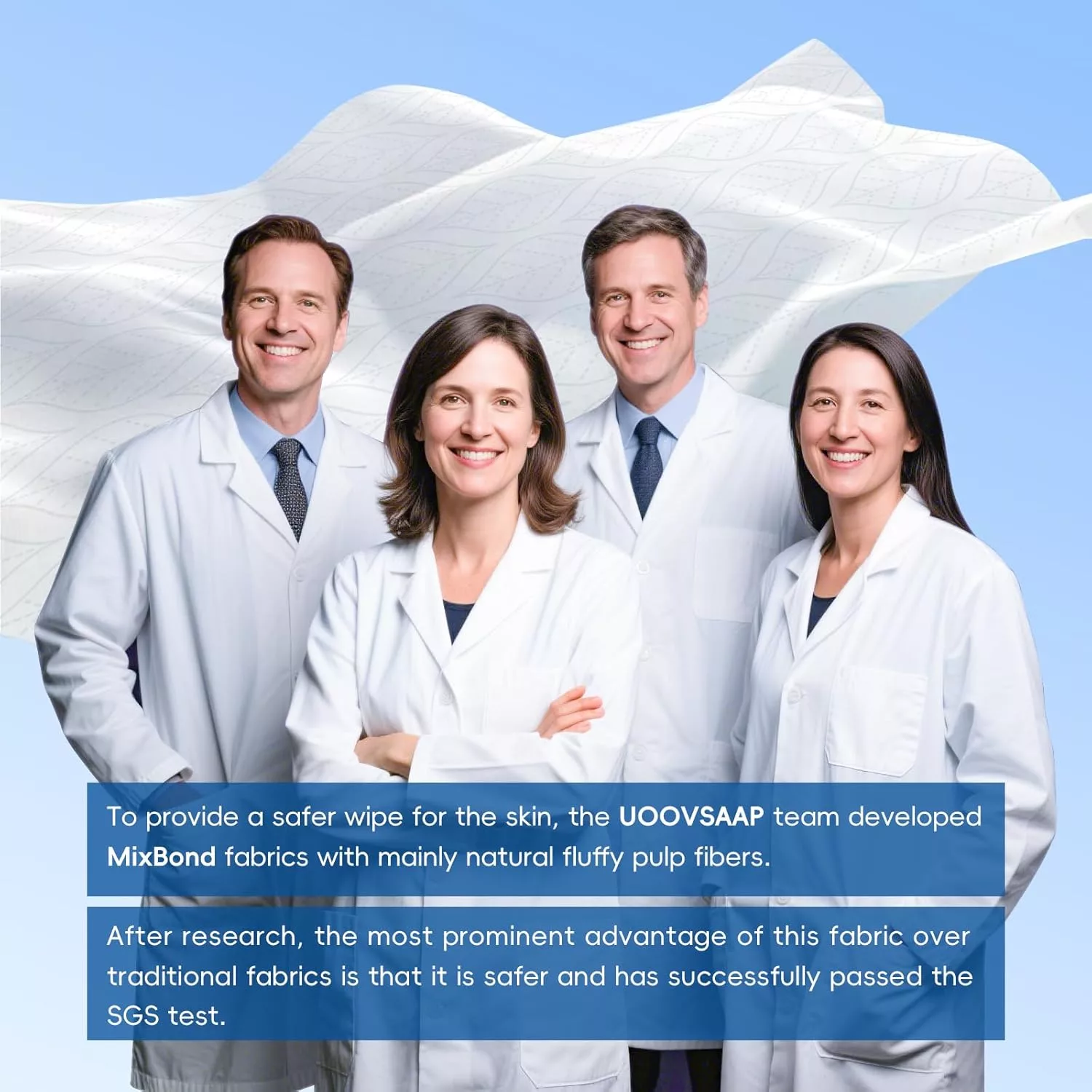 Uoovsaap tuala muka pakai buang dibuat dengan teknologi fabrik nonwoven Mixbond Tymus yang maju. Proses inovatif ini ikatan gentian tumbuhan semulajadi tanpa bahan kimia yang keras, menghasilkan kain yang sangat lembut, tahan lusuh, dan sangat menyerap. Berbanding dengan nonwovens biasa, Mixbond menawarkan kekuatan unggul, tekstur seragam, dan biodegradability mesra alam, menjadikannya sesuai untuk kulit sensitif dan penyelesaian penjagaan kulit yang mampan.
